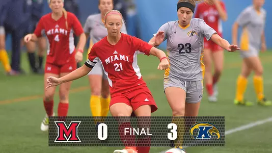Oct. 20, 2016 KENT, Ohio - The Miami University soccer program suffered its first setback in nearly a month, dropping a 3-0 decision at Kent State on Thursday afternoon.