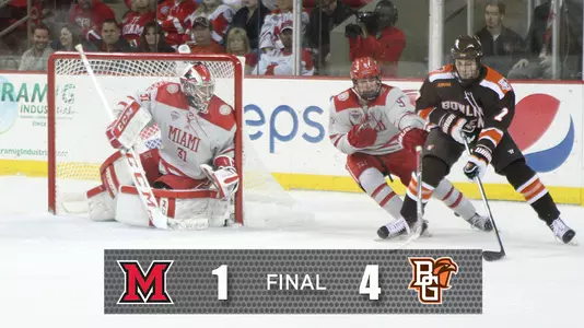 Down a couple goals, Miami struggled to get set up in the offensive zone and Bowling Green eventually capped the scoring on a power play goal by Mark Friedman with 10:23 remaining.
