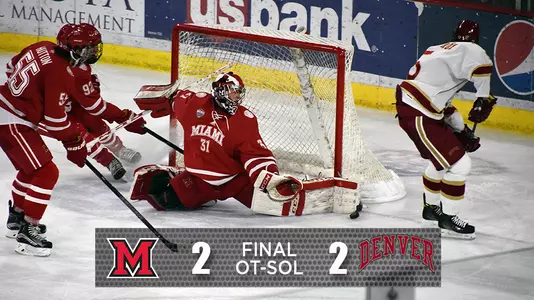 DENVER - Ryan Larkin made 49 saves and the Miami hockey team scored late to tie No. 1 Denver for the second-straight game, 2-2, on Saturday night.