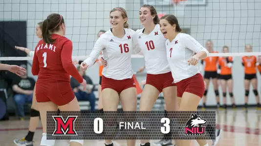 DEKALB, Ill. -- The top seeded Miami University volleyball team ran into a hot-hitting Northern Illinois team in the Mid-American Conference Championship on Sunday. The second-seeded Huskies took a 3-0 (25-18, 25-20, 25-20) victory to earn the automatic bid to the NCAA Tournament. NIU improves to 25-5 on the season, while the RedHawks fall to 24-6.