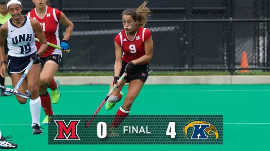 KENT, Ohio -- The Miami University field hockey team played even with top seed Kent State for a half, but a big second half offensive attack for the Golden Flashes gave them a 4-0 victory in the Mid-American Conference Championship game Saturday afternoon. KSU advances to the NCAA Tournament with a 13-6 record, while the RedHawks finish their season at 12-8.
