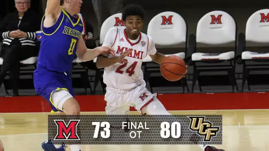 ORLANDO, Fla. -- The Miami University men's basketball team battled hard to overcome a double-digit deficit and force overtime, but ultimately fell to UCF, 80-73, on Sunday in Orlando, Florida. The RedHawks drop to 5-6 on the season, while the Knights improve to 8-3.