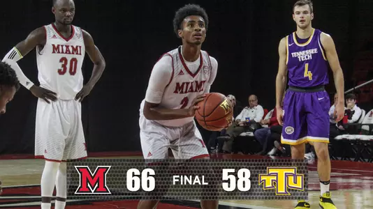 OXFORD, Ohio - A strong defensive effort propelled the Miami University men's basketball team to a 66-58 victory over the Tennessee Tech Golden Eagles on Thursday. The RedHawks improve to 6-6 on the season, while the Golden Eagles fall to 4-11.