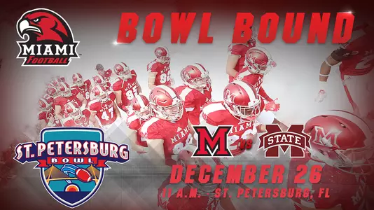 The Miami University football team has announced that it has accepted an invitation to play in the St. Petersburg Bowl versus the Mississippi State Bulldogs in St Petersburg, Florida on Monday, December 26, 2016. Opening kickoff is set for 11 a.m. and will be carried live on ESPN.