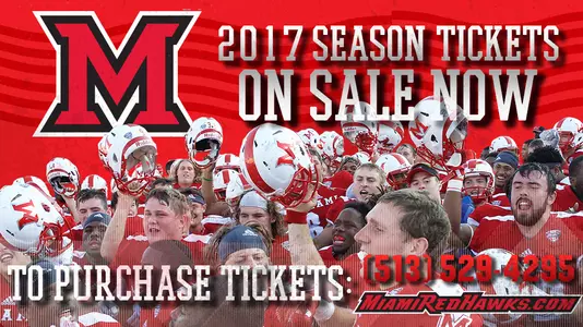 OXFORD, Ohio - Miami University Athletics has announced that season tickets for the 2017 football season are available, starting today. Fans can purchase season tickets by calling (513) 529-4295 or by clicking HERE. Current season ticket holders may renew their season tickets by visiting this LINK.