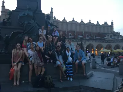 OSWIECIM, Poland ââ'¬" The Miami University volleyball team learned an important and sobering lesson on Sunday as it made the short drive to Oswiecim to tour the Auschwitz Concentration/Death Camp, where nearly 1.1 million people were murdered during World War 2. That evening, the RedHawks were able to decompress with a nice dinner and some free time in Krakow's town square, which is the largest in all of Europe.