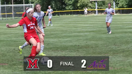 OXFORD, Ohio -- An early penalty kick dug the Miami soccer team into a deficit it could not climb out of in a 2-0 loss to Evansville on Sunday afternoon.
