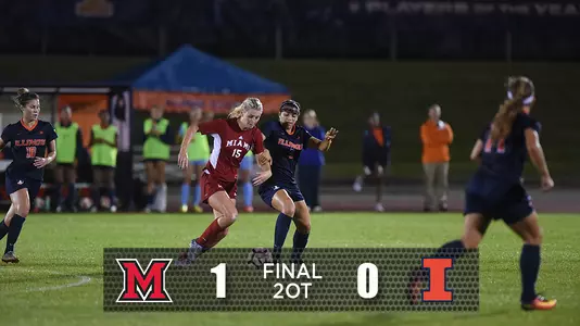 The freshman forward scored 1:13 into double overtime to lift the RedHawks to a 1-0 victory at Illinois on Friday night. That tally was her second double overtime winner of the season as she also turned the trick against Western Kentucky on Aug. 26. More importantly, it gives Miami (3-3) its second-straight win and moves it to .500 on the season.