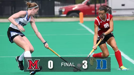 OXFORD, Ohio -- The Miami University field hockey team hung with second-ranked Duke for the majority of the contest, but a five minute stretch early in the second half proved to be the difference in a 3-0 Blue Devils victory. The RedHawks fall to 3-5 on the season, while Duke improves its record to a perfect 8-0.