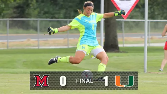 CORAL GABLES, Fla. - Despite getting outshot by a three to one margin, the Miami University soccer team held tough with the nation's highest scoring team, but ultimately dropped a 1-0 decision to the University of Miami on Friday night.