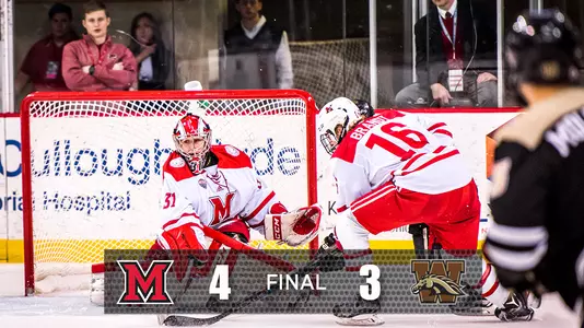 OXFORD, Ohio - Ryan Larkin made 44 saves to help the Miami hockey team hold off a late surge from No. 10/10 Western Michigan in a 4-3 victory on Saturday night.