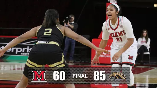 OXFORD, Ohio - The Miami University women's basketball team fell in an 85-60 decision to Western Michigan on Wednesday evening at Millett Hall. The defeat moved the RedHawks' record to 6-9 (0-2 MAC) on the year, while the Broncos improved to 11-2 (2-0 MAC).