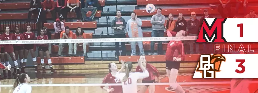 BOWLING GREEN, Ohio -- In a battle similar to their first meeting, the Miami University volleyball team went back-and-forth over several long rallies against Bowling Green on Thursday. This time the RedHawks came up a little short as they fell, 1-3 (25-22, 17-25, 24-26, 21-25). Miami is now 16-8 overall and 8-3 in the Mid-American Conference. The Falcons are 13-9 overall and 9-2 in the MAC.