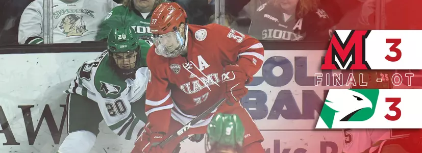 GRAND FORKS, N.D. - After a tough loss on Friday, the Miami hockey team took a 2-0 lead nearly midway through Saturday night's series finale at No. 2/4 North Dakota, then rallied from a late deficit to earn a 3-3 tie at Ralph Engelstad Arena.