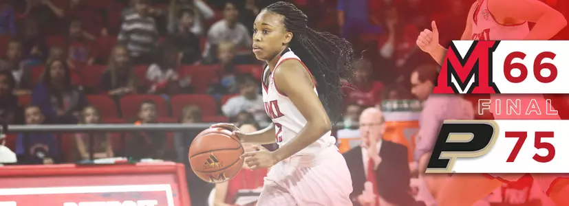 WEST LAFAYETTE, Ind. - The Miami University women's basketball team hung tough in its first road test of the season, but ultimately fell to Purdue, 75-66, Wednesday evening at Mackey Arena.