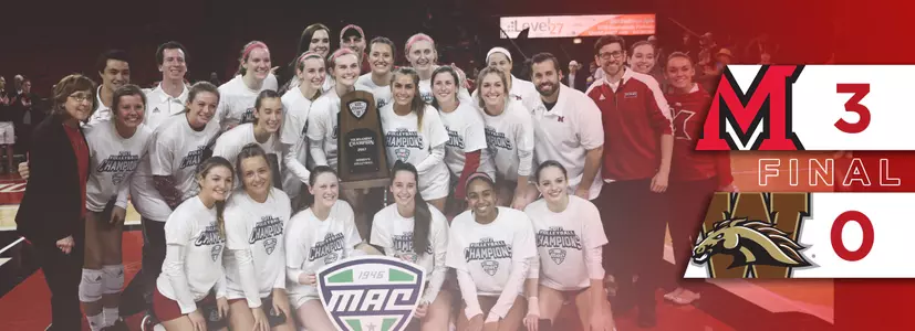OXFORD, Ohio -- Knowing that Western Michigan had a history of coming from behind in the Mid-American Conference Tournament, the Miami University volleyball team left no doubt as it took a 3-0 (25-21, 25-20, 25-18) win in the MAC Tournament Championship in front of an excited home crowd on Sunday. The RedHawks improve to 23-8 on the season and win the tournament title for the first time since 2007. The Broncos finish the year 18-13.