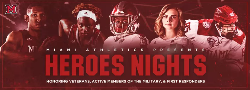 OXFORD, Ohio ÃÆ'Æ'¢ÃÆ'¢'¬" Miami Athletics is proud to honor both veteran and active members of the military as well as first responders during a series of games over a cross-section of sports from Nov. 3-Dec. 30. Designated Heroes Nights there will be several pre-game and in-game presentations. In addition, heroes and their guests will receive special ticket prices for the following events: