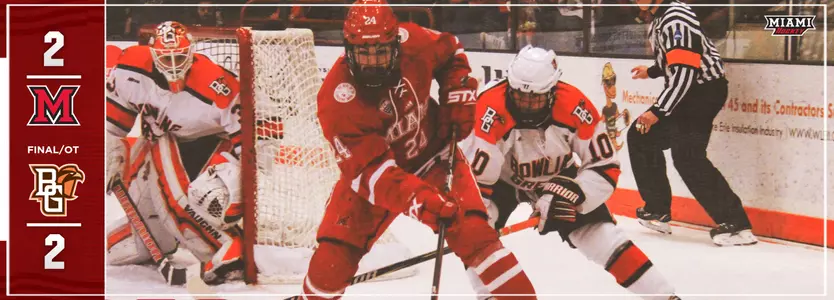 BOWLING GREEN, Ohio - After a slow start, the Miami hockey team rallied to grab a third period lead in Saturday night's series finale at Bowling Green, but a late Falcon goal forced overtime as the teams skated to a 2-2 tie.