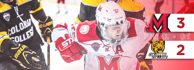 OXFORD, Ohio -- Trailing 2-1 late, the Miami hockey team scored in the final minute and struck again in overtime to top Colorado College 3-2 in its National Collegiate Hockey Conference opener on Saturday.