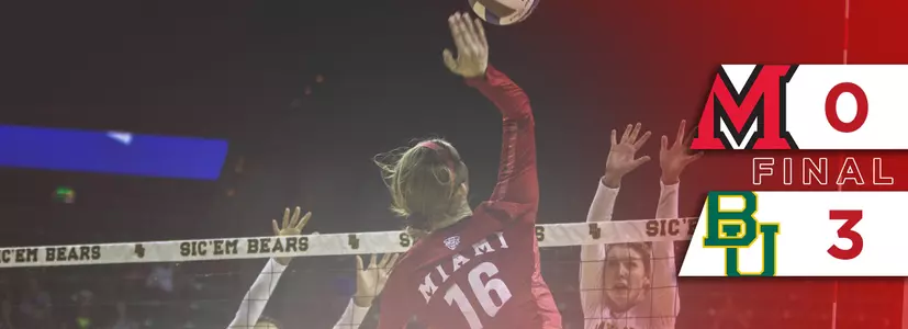 WACO, Texas -- The Miami University volleyball team battled hard and showed a lot of grit in each set, but ultimately fell 0-3 (19-25, 16-25, 21-25) to No. 12 seed Baylor in the first round of the NCAA Tournament on Friday. The RedHawks finish the season at 23-9, while the 18th-ranked Bears improve to 24-6.