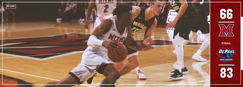 A jumper by Sibande and a three-pointer from Ringo helped close Miami to within six at 41-35 with 15:19 remaining in the game. The Red and White had another scoring drought, allowing the Blue Demons to go on a 15-4 run to take control at 56-39.