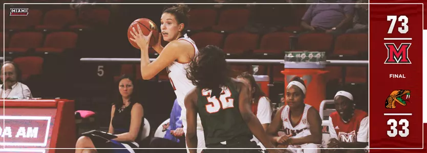 OXFORD, Ohio - Kendall McCoy poured in 18 points off the bench as the Miami women's basketball team wrapped up non-conference play with a dominant 73-33 victory over Florida A&M on Thursday night.