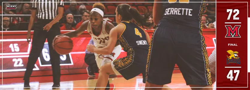 OXFORD, Ohio - The Miami University women's basketball team rolled the visiting Golden Griffins of Canisius College on Sunday at Millett Hall for a 72-47 victory. The RedHawks improve to 4-3 on the season, while Canisius falls to 2-5.