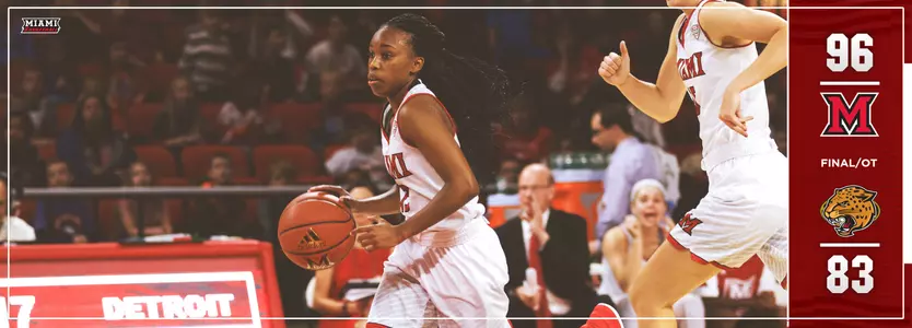 INDIANAPOLIS, Ind. - Facing a 16-point deficit with under a minute to go in the third quarter, the Miami University women's basketball team stormed back to upend IUPUI, 96-83, in overtime behind sophomore guard Lauren Dickerson's career-high 42 points in front of family and friends.