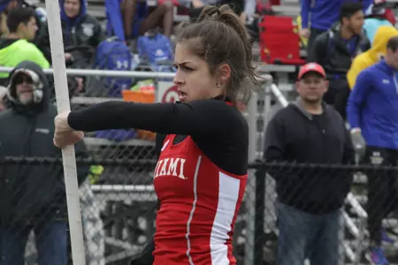 Miami had several student-athletes get their first taste of college track & field Friday. Elise Walker, competing in the high jump, cleared up to 4-11 but could not quite get the next level of 5-1. Lexi Addington, a pole vaulter, cleared 10-0 in two tries. She faulted twice on 10-6, but secured the mark on her final try.