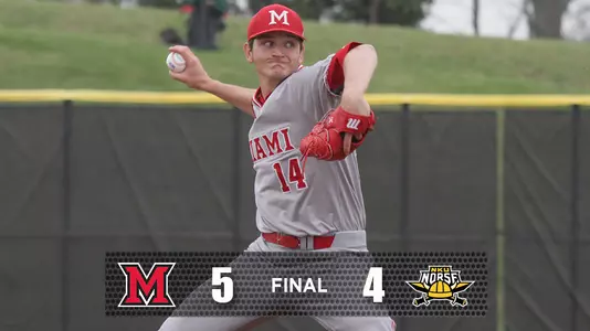 HIGHLAND HEIGHTS, Ky. - Five solid innings in relief by Bailey Martin and two home runs from Dallas Hall helped the Miami University baseball team to a 5-4 comeback victory over Northern Kentucky on Tuesday. The win improved the Red & White's record to 6-16 on the year while the Norse dropped to 8-14.
