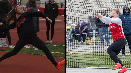 The duo's first-place finishes in the javelin and hammer throw, respectively, have the RedHawk women sitting second in the team standings with 25 points, trailing only Bowling Green's 27 after day one. Miami's men sit fifth in the team rankings with seven points as Eastern Michigan's 43 points paces the men's side.