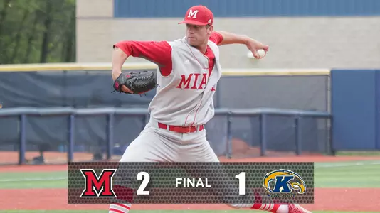 KENT, Ohio - The Miami University baseball team kept its MAC tournament hopes alive by salvaging the series finale at Kent State in a 2-1 decision on Sunday at Schoonover Stadium. Grant Hartwig's pinch-hit RBI single in the top of the eighth represented the game-winning hit, while two strong performances out of the bullpen sealed the victory.