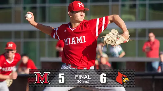 LOUISVILLE, Ky. - Following a promising start to the evening, Miami University's baseball team was unable to hold off a late charge from the University of Louisville, falling, 6-5, in 10 innings Tuesday evening at Jim Patterson Stadium.