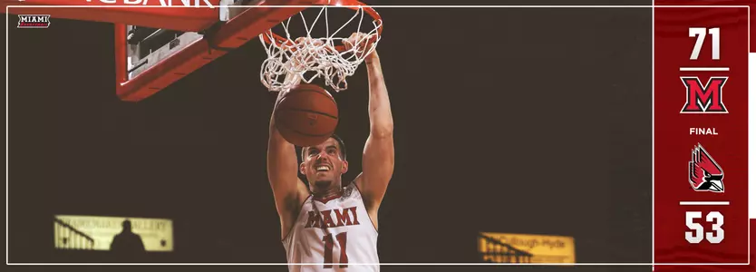 OXFORD, Ohio - Darrian Ringo (21 points) and Logan McLane (20 points) combined for 41 points as the Miami men's basketball team pulled out an impressive 71-53 victory over Ball State on Saturday afternoon.