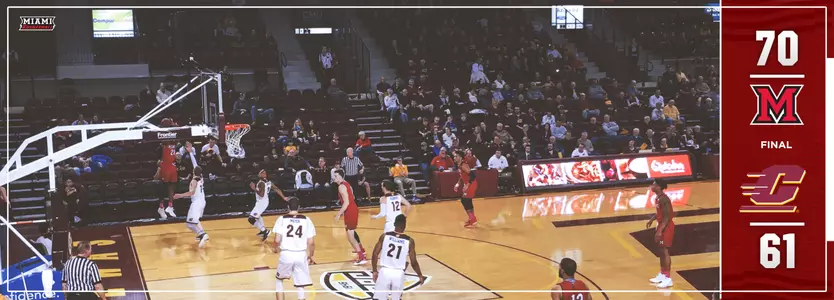 MOUNT PLEASANT, Mich. -- The Miami University men's basketball team jumped out to an early lead and used a consistent offensive attack and a strong defense to earn a 70-61 victory at Central Michigan on Tuesday. The RedHawks improve to 11-9 overall and 4-3 in the Mid-American Conference. The Chippewas fall to 13-7 overall and 2-5 in the MAC.