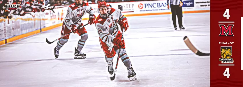 COLORADO SPRINGS, Colo. - Despite a slow start to the game, the Miami hockey team roared back to take a lead over Colorado College, but ultimately settled for a 4-4 tie on Saturday night.