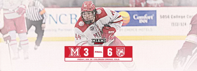 COLORADO SPRINGS, Colo. - An early goal gave Colorado College a lead it would not relinquish as the Miami hockey team fell in its series opener on the road by a 6-3 score on Friday night.