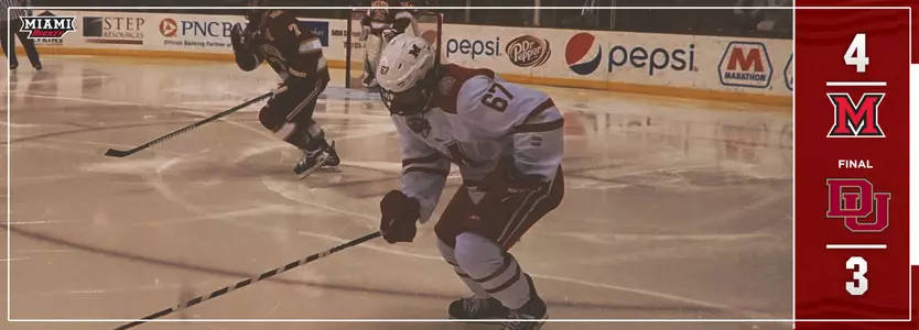 Another icing by Miami with 2:41 left gave Denver another chance to set up play with an extra attacker. The Pioneers won several faceoffs in the offensive zone to keep the pressure on, but the RedHawks got timely blocked shots and prevented the Pioneers from getting the equalizer.