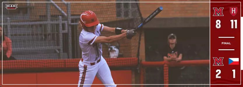 KISSIMMEE, Fla. - The Miami University softball team split its first two games at the Diamond 9 Citrus Classic on Friday. In the first game, the RedHawks lost 11-8 against Harvard. Miami beat the Czech National Team in extra innings, 2-1.
