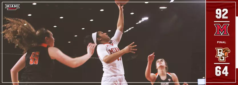 OXFORD, Ohio - Miami University dominated Bowling Green in the teams' second meeting of the season Saturday. Kendall McCoy led the way with 25 points - 13 of which came in the first quarter of play. Three other `Hawks also hit triple digits: Lauren Dickerson (17), Leah Purvis (17), and Savannah Kluesner (10). The team shot 54.2 percent from the field and 61.9 percent from three.