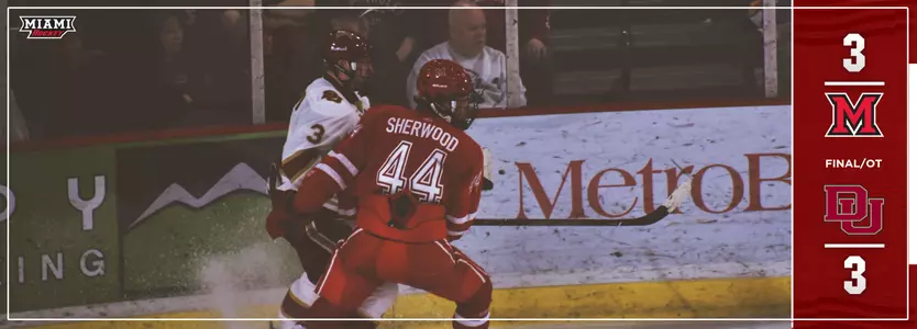 DENVER - After a disastrous beginning, the Miami hockey team showed toughness by rallying to tie No. 4/5 Denver, 3-3, and pick up two conference points in the team's regular season finale on Saturday night.